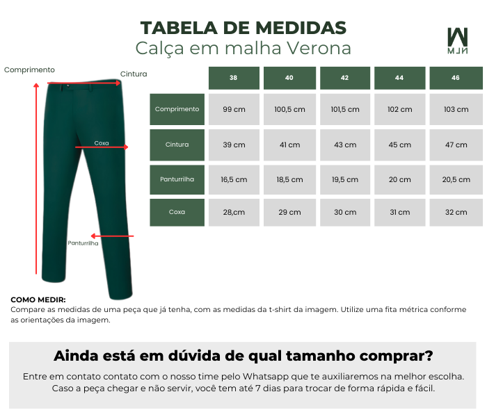 OBS: Modelo tem 1,80 m e 82 kg e está vestindo 40 deste produto!